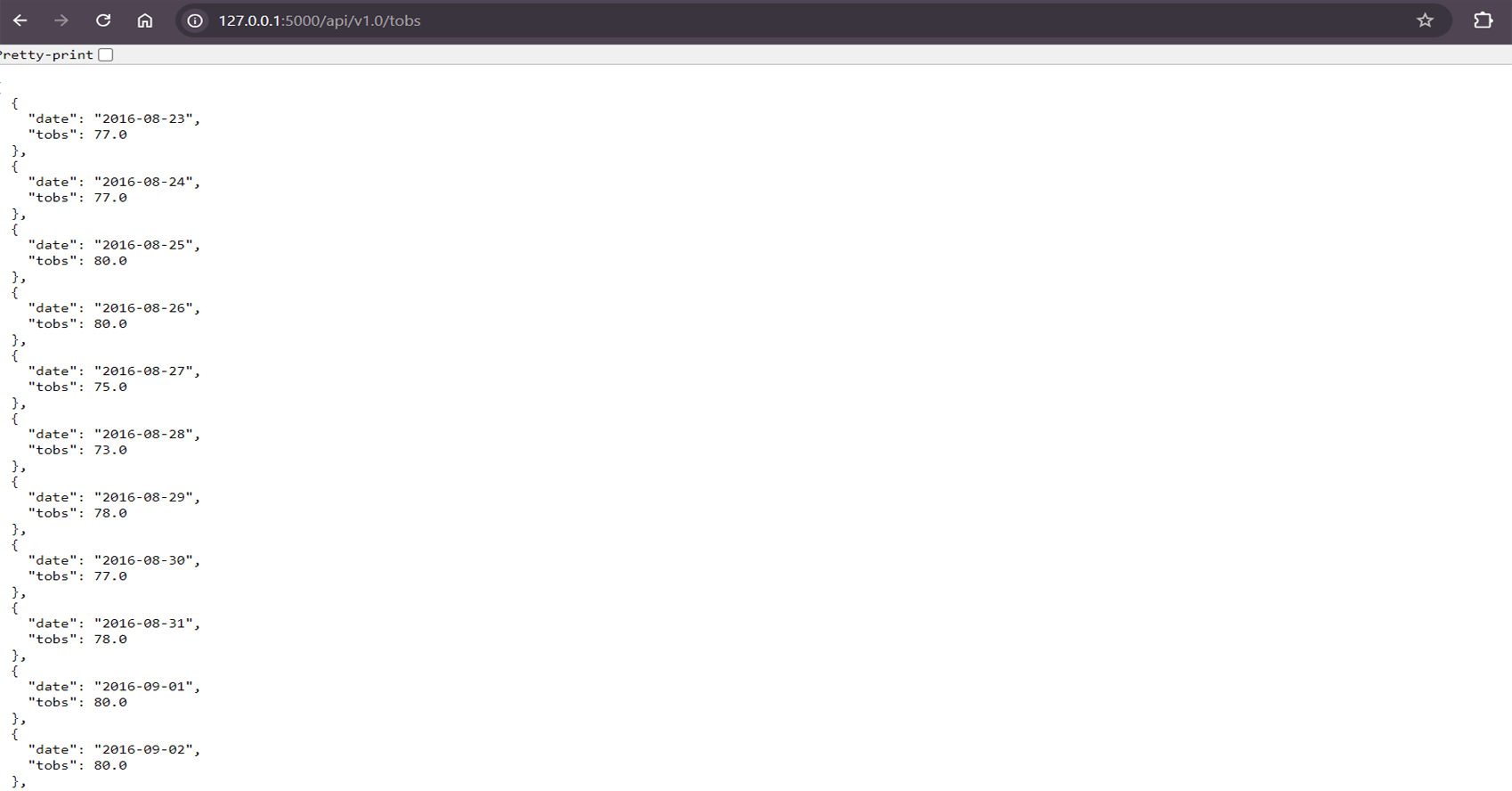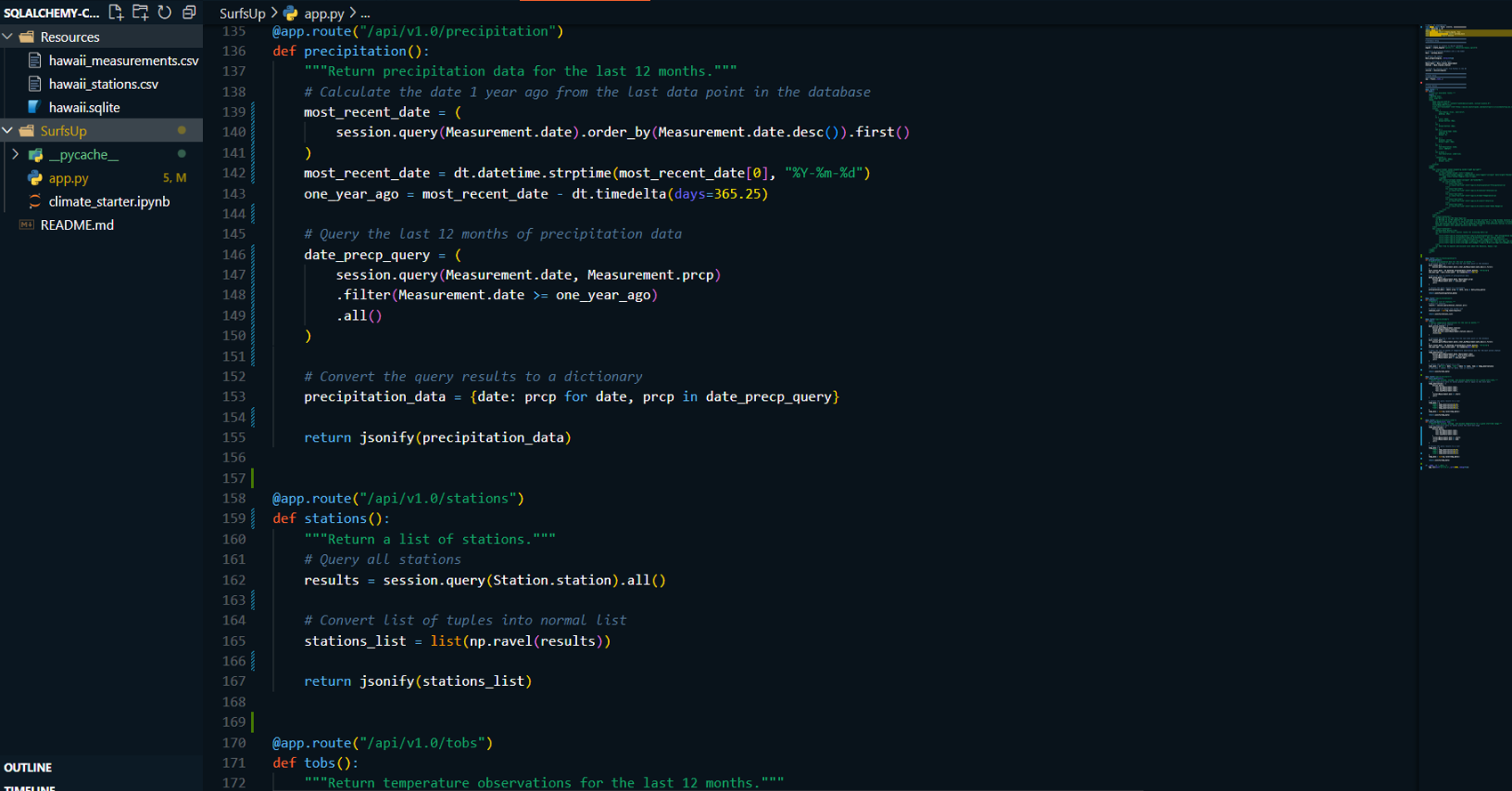 - Designed a Flask API to expose climate data analysis results through several endpoints.
