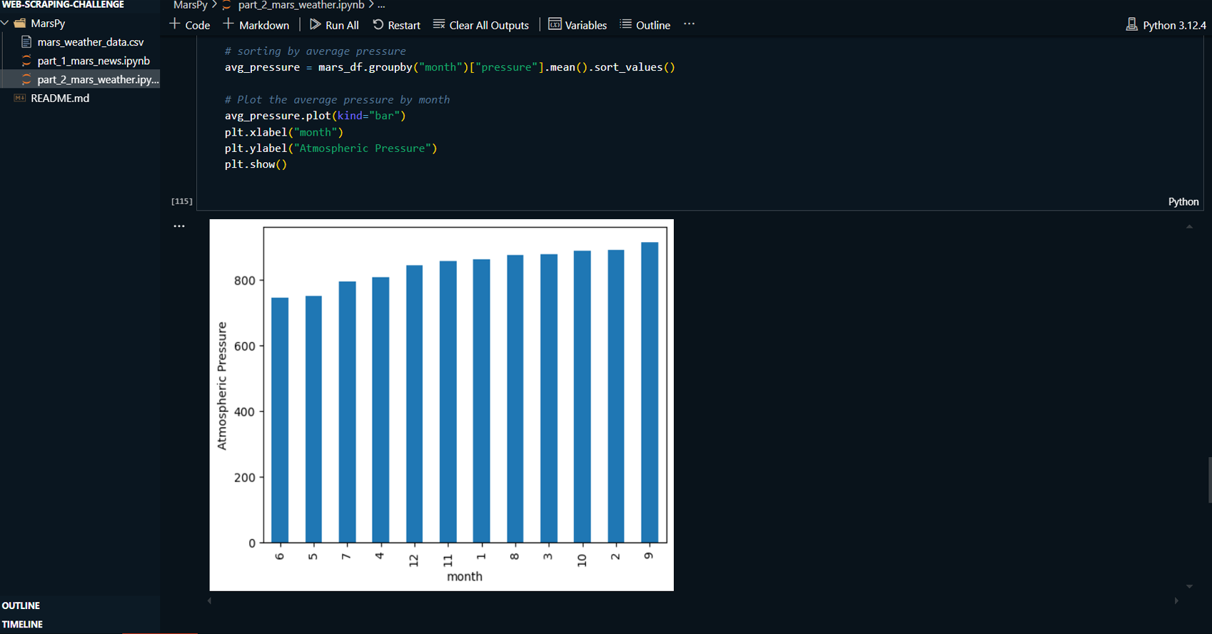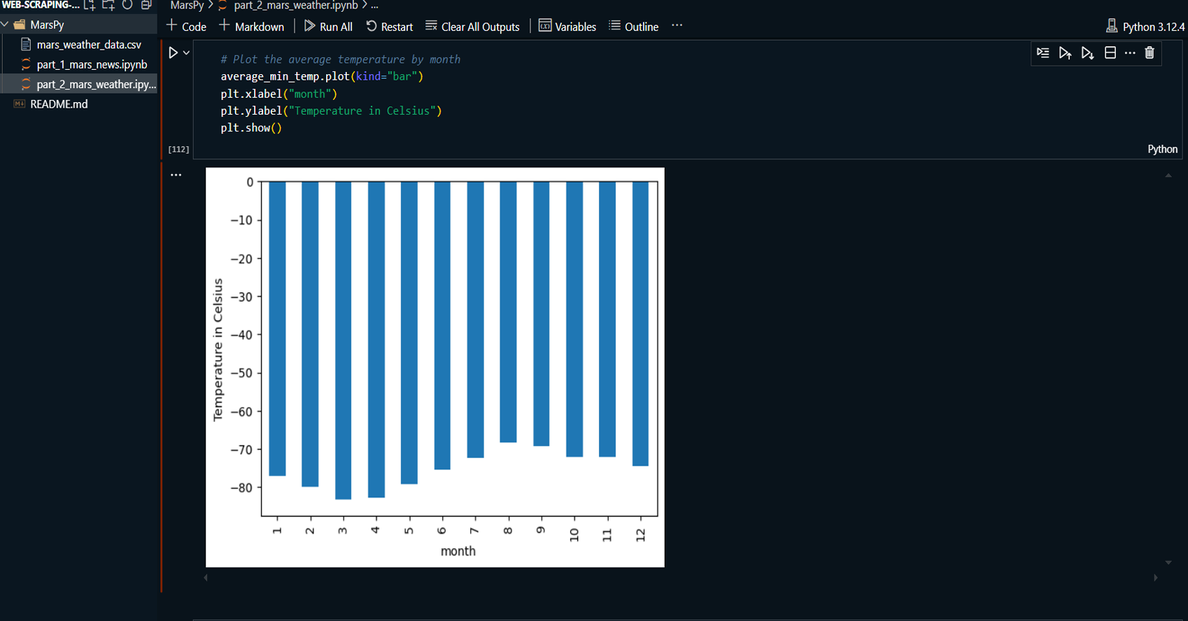 Exported the cleaned Mars weather data to a CSV file