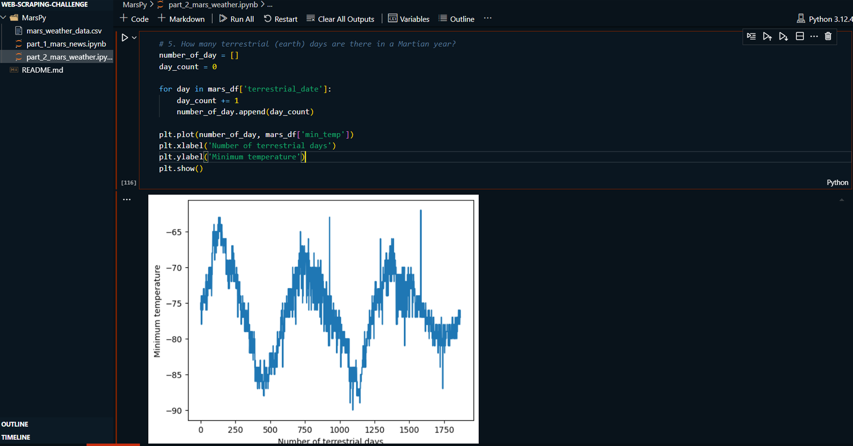 Martian year based on the scraped weather data.