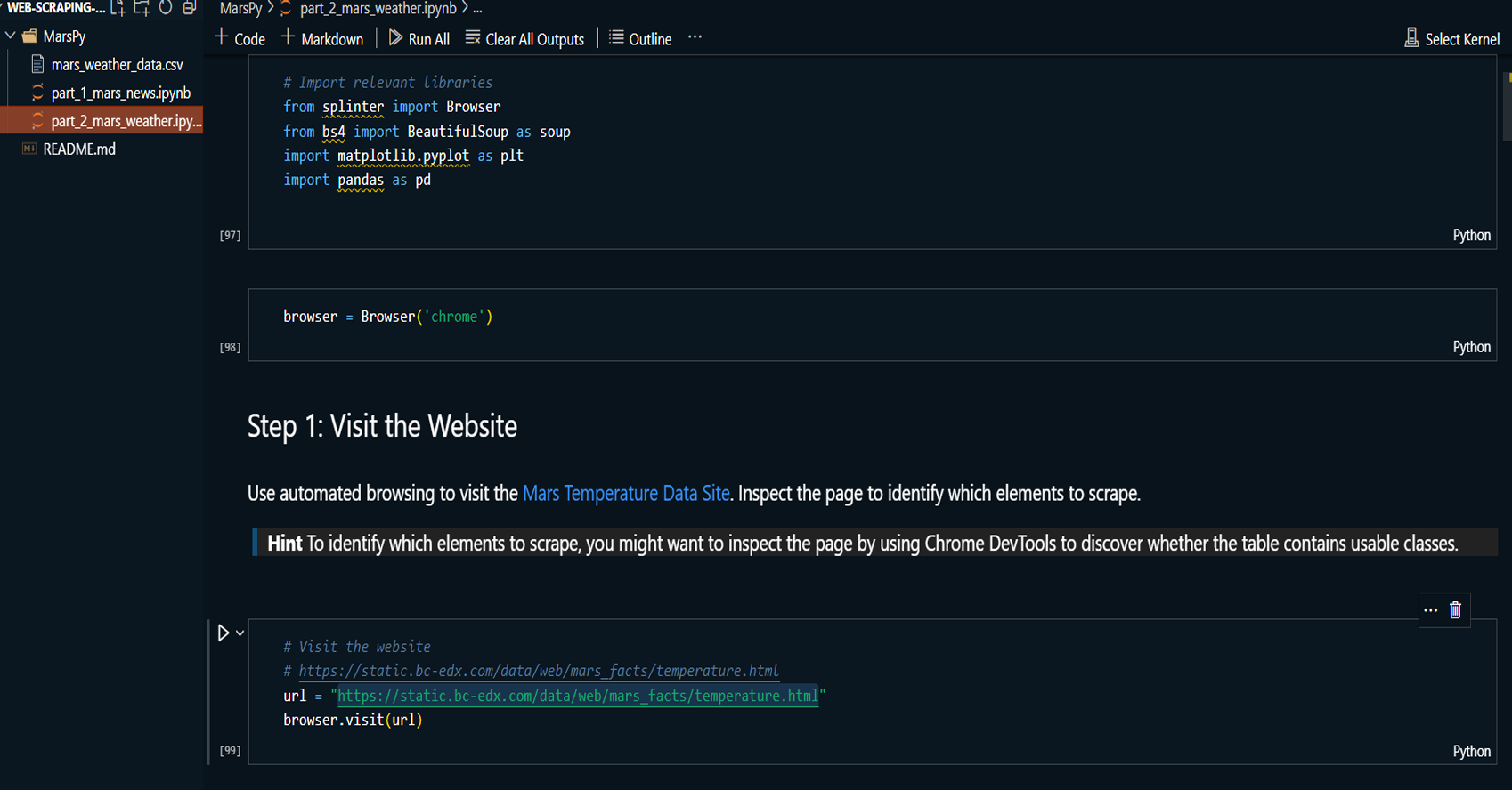 gather Mars-related news and weather data. The first part