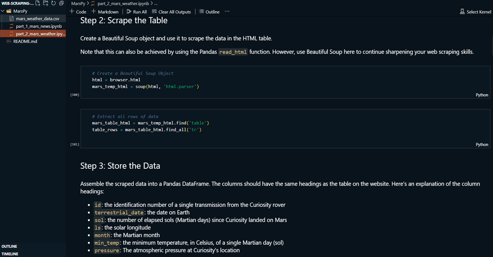 articles. The second part involves scraping Mars weather