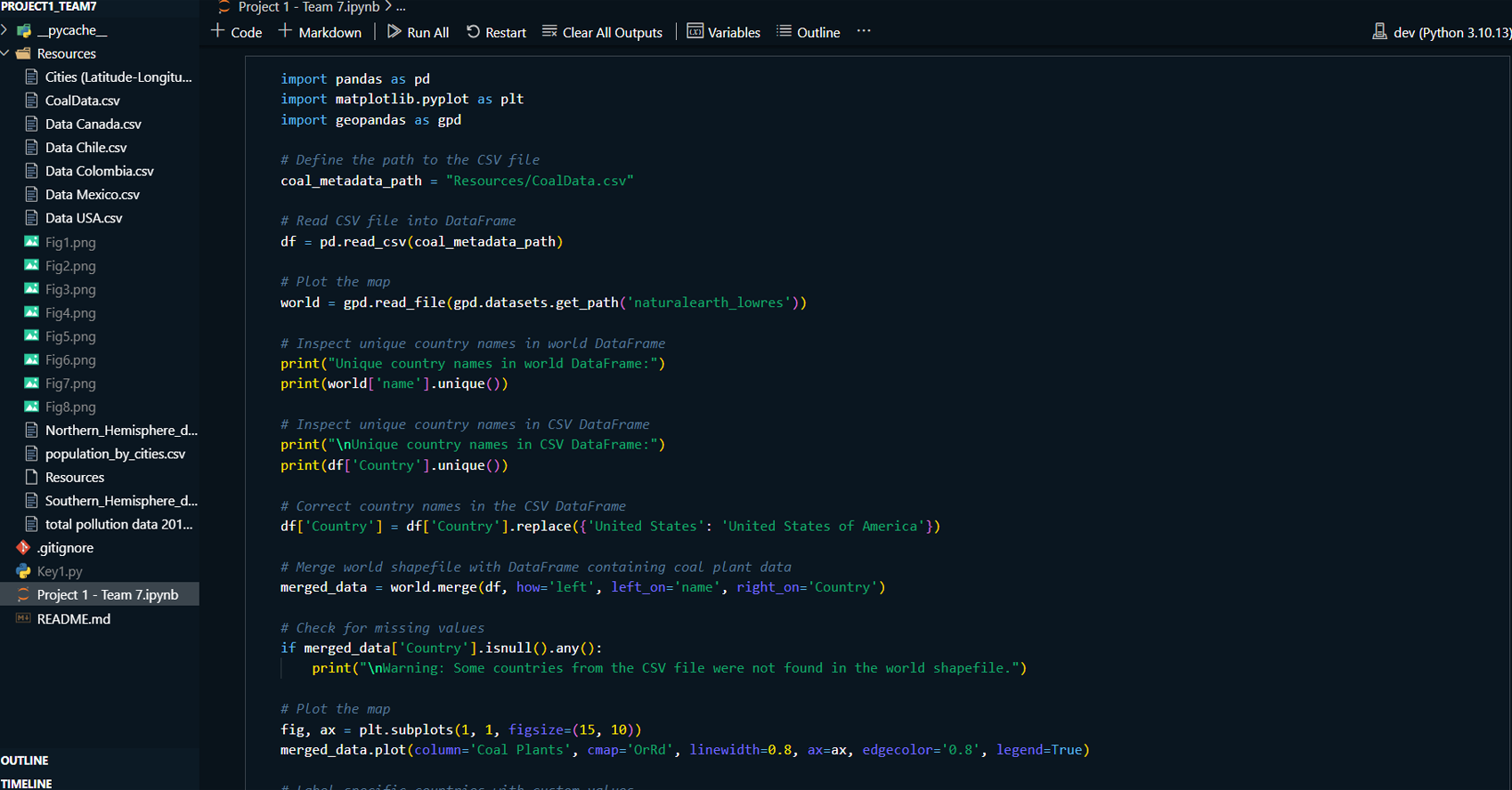 Developed GeoPandas maps to show pollution hotspots and areas of high coal plant concentration in the selected countries.