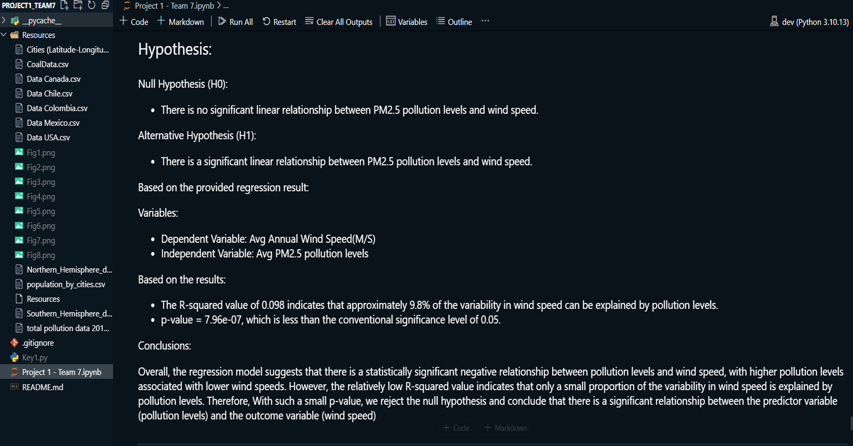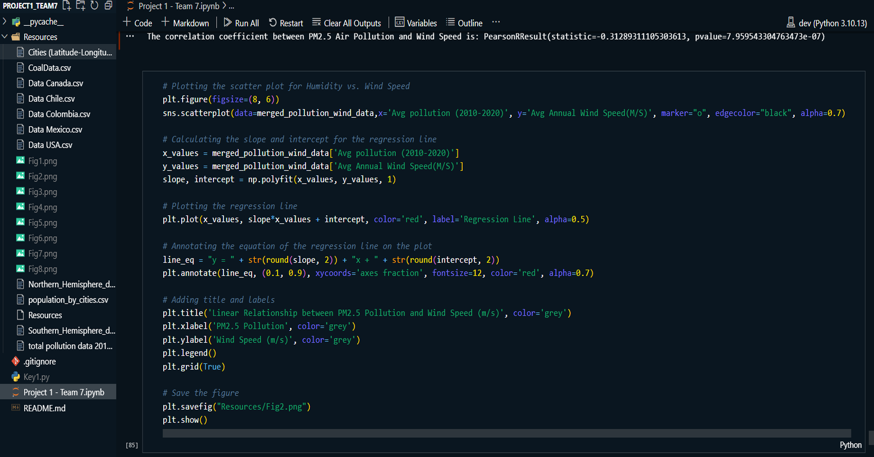 Used scatterplots to explore trends in air pollution across North and South America, analyzing how temperature, humidity, wind speed, and other factors correlate with pollution levels.