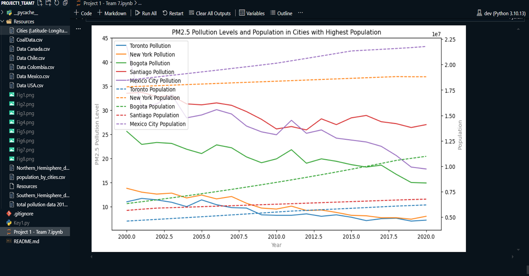 Collected and organized historical data on global temperature and PM2.5 air pollution for the USA, Canada, Mexico, Chile, and Colombia.