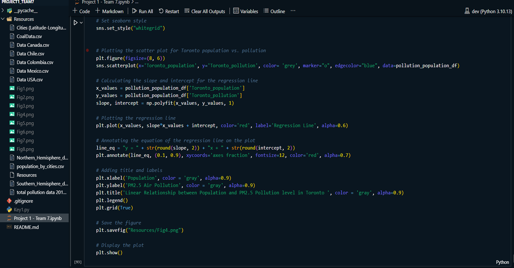 Created line charts and regression plots to visualize the relationship between temperature and pollution over time.