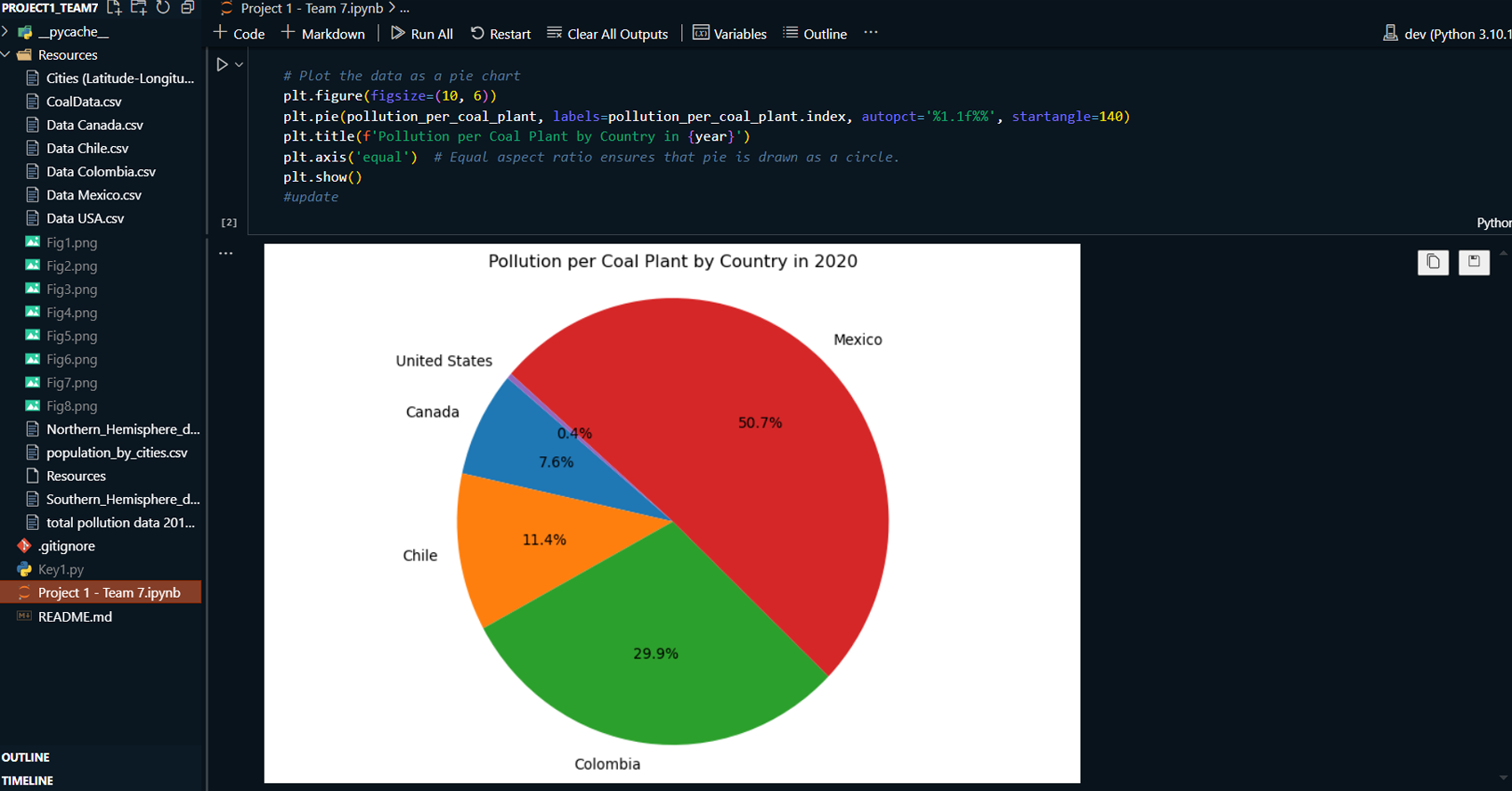 This project explores the correlation between rising global temperatures and increased levels of PM2.5 air pollution across selected countries: the USA, Canada, Mexico, Chile, and Colombia. The analysis includes historical temperature and pollution data, population metrics, and additional factors such as humidity and wind speed. The study employs various visualization techniques, including scatterplots, line charts, and regression plots, to assess relationships between temperature and air pollution trends. A geographical component is also introduced by mapping countries with coal plants to evaluate the impact of coal-based energy production on pollution density.