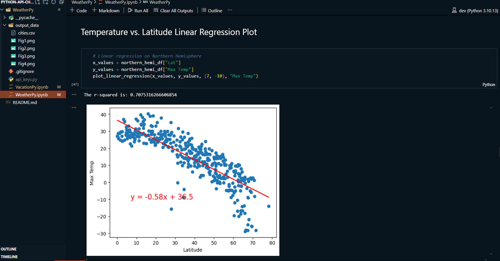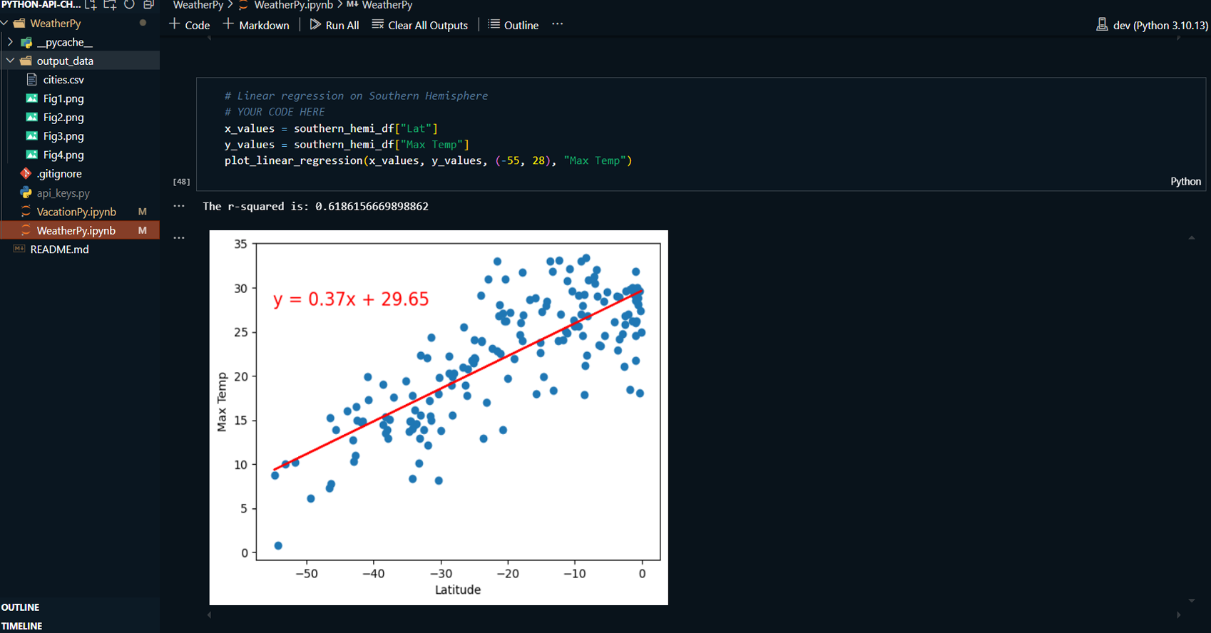WeatherPy: A comprehensive analysis of weather variables, such as temperature, humidity, cloudiness, and wind speed, in relation to latitude. Using data from the OpenWeatherMap API, this analysis includes visualizations through scatter plots and linear regression models to compare weather trends between the Northern and Southern Hemispheres.
