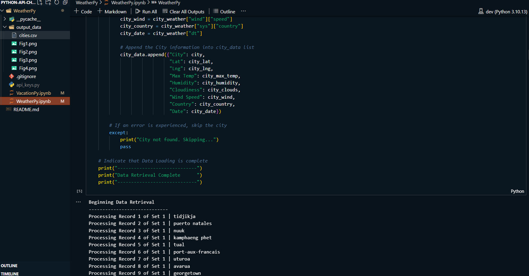 Cleaned and formatted the retrieved weather data into a Pandas DataFrame and exported it as a CSV file for further use.